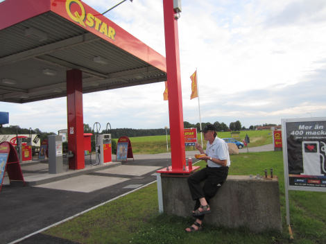 Men när vi närmade oss Brålanda upphörde regnet precis som vi planerat. Vi startade kvällen med gasoltankning.
