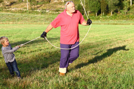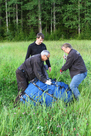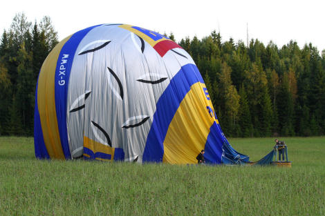 Bengt offrade sig efter landningen och hjälpte till att rangera ballongen närmare en lämplig plats att packa på.