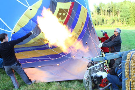 Så startades brännaren och ballongen fylldes med varm luft.