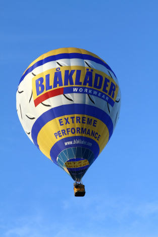 Så begav sig Blåkläderballongen också upp i luften. Formen på ballongen är lite smalare än klubbens ballonger - det är en tävlingsballong som snabbare ska kunna klara att stiga och sjunka i luften.