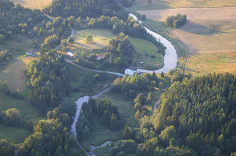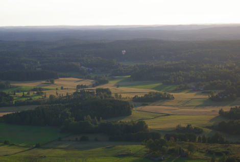 Eva och Jonas försökte nå ett av sina mål för kvällen - den östra korsningen vid Edstenafors. Vinden ville inte riktigt föra ballongen ända dit, men korsningen var inom synhåll i alla fall.