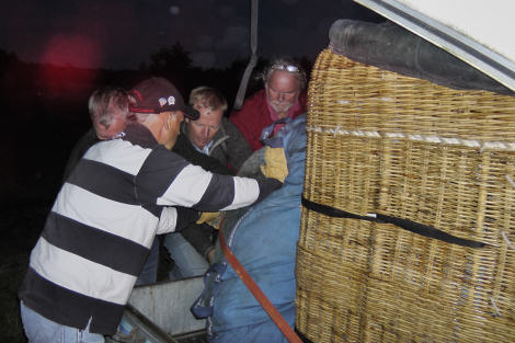 Två ballonger fanns på plats vid samlingen på torget i Högsäter när medlemmarna träffades inför flygningen. Björn planerade göra sin premiärflygning med eget ballongcertifikat i TORP-ballongen och EM-laget tänkte träningsflyga Blåkläderballongen.
