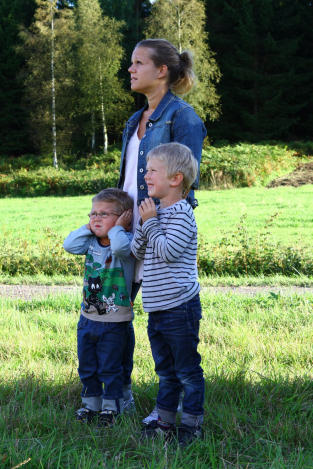 Wiliam, mamma Christina och Alexander såg ballongstart för första gången.