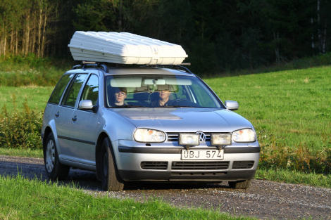 Erika och Eva återvände till gärdet med bilen igen. Är det något hemligt tävlingsvapen som gömmer sig i takboxen?