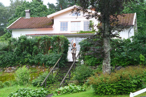 Färskt bröd med alla tillbehör avnjöts sedan i Tomas magnifika bostad. Tomas fick oss alla att känna oss som hemma - inte bara Cathy som här står vid trappan och vinkar glatt. Om man någon gång kan prata om mysfaktor så är det verkligen det hemma hos Tomas!!!