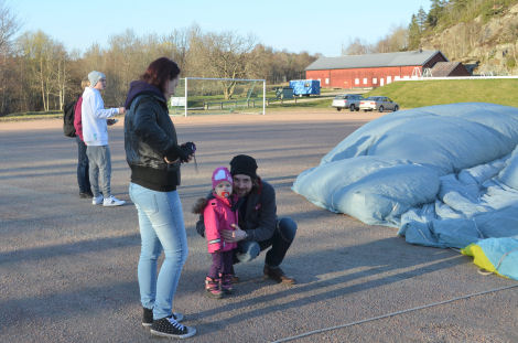 Vid fotbollsplanerna intill I17-området i Uddevalla tyckte vi att det skulle bli en bra startplats. Vi = 3 ballonger med crew. En bland de yngsta var Lova som tillbringade en del av sin 2-årsdag i ballongsvängen.