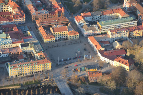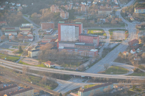 I17-områdets (före detta regemente) pampiga byggnader kunde strax beundras från ovan ...