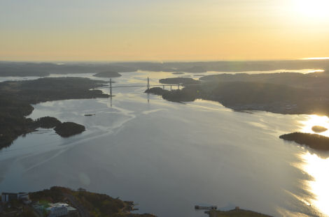 Solen gassade och gjorde utsikten ut över Uddevallabron extra skön att skåda. Det kunde dock kostateras att vi inte skulle nå Herrestad utan fick satsa på den södra landdelen istället.