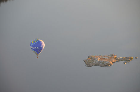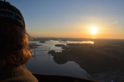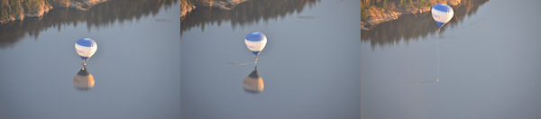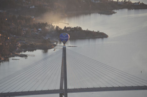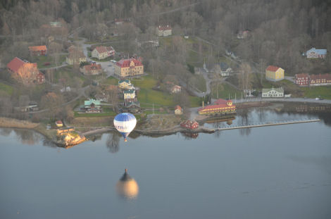 Vid Gustavsberg flög Kenneth med Altran-ballongen nära vattnet som för att spegla sig lite extra.