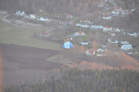 Kenneth landade på ett gärde vid Ammenäs men fick snabbt packa ihop då två traktorer höll på att plöja och gjorde landningsplatsen mindre och mindre för dem.