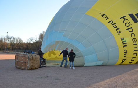 Altran-ballongen kom först upp i luften. Tanken var nu att flyga ut mot Herrestad.