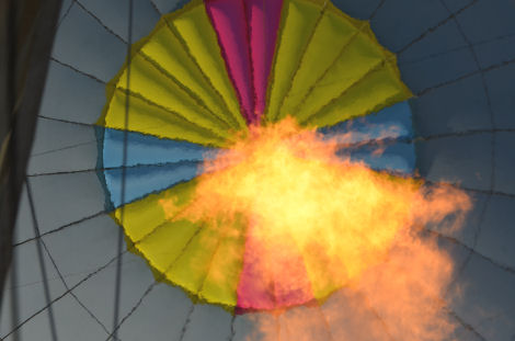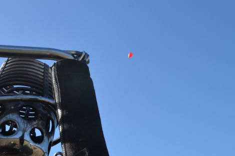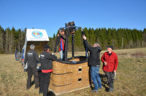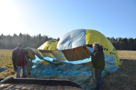 ... brännaren kunde startas och värma luften så att ballongen reste sig upp. Luften brukar vara cirka 75 grader varmare inne i höljet än yttertemperaturen vid flygning.