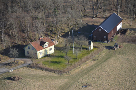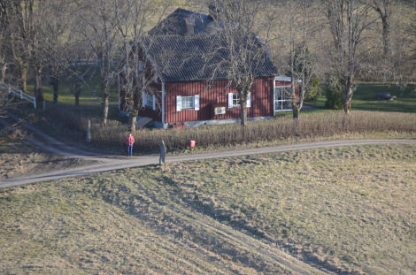Markägaren stod utanför sitt hus och såg oss sväva iväg.