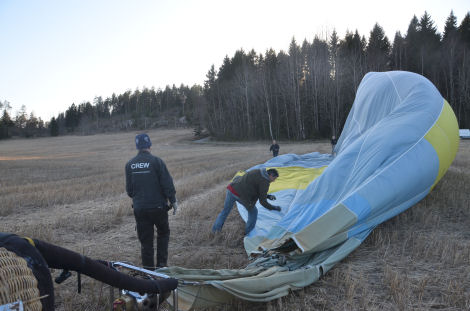 Ballonghöljet tömdes snabbt på luft och packades samman.