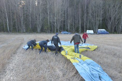 Vindarna skyndade på lite mer än beräknat så idag drogs korgen omkull vid landningen. Flertalet passagerare ansåg dock att det blev en mjuk landning - ovanpå Jörgen.