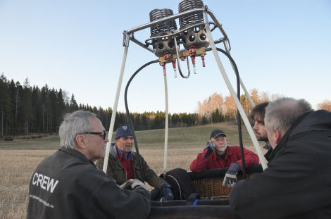 Jonas, Lova, Tomas och Eva samt följebilen lämnades kvar på backen då ballongen gav sig upp i lufthavet.