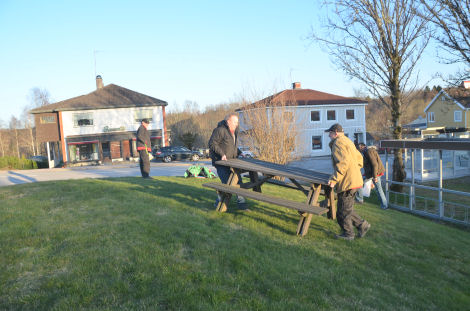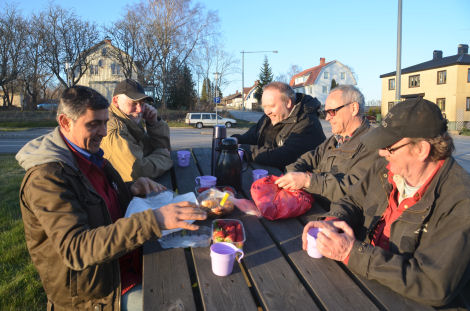 Tillbaka vi Högsäters torg så försökte vi hitta en solig plats för fikastunden.
