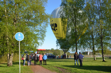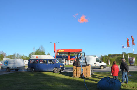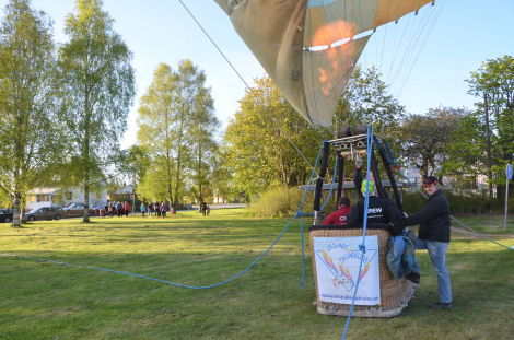 Både vid macken tvärs över vägen och från närområdet samlades folk. Många barn passade på att få komma upp i ballongkorgen en stund också.