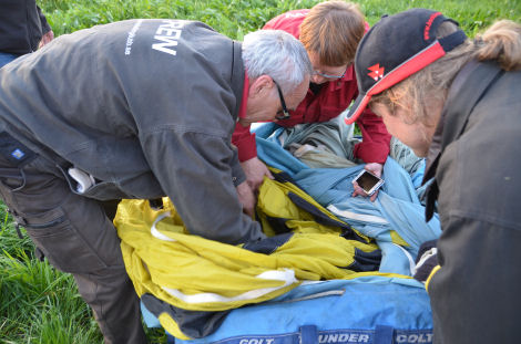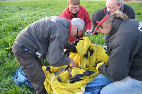 Efter att allt var packat började Kenneth att röra runt i ballonghöljet igen. Allt medan Gun stod redo intill med sin telefon. Fler och fler började hjälpa Kenneth att komma neråt i säcken som ballonghöljet var packat i. Vad höll de på med?