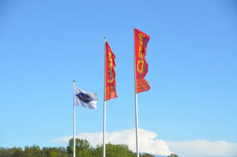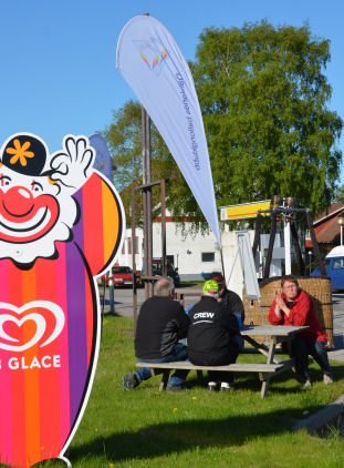 Tanken var att vi också skulle försöka oss på en förankrad uppvisning intill macken. Flaggorna studerades flitigt.