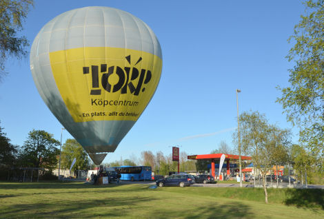Vädret såg så bra ut så efter ballongen visats upp en stund blev det flygning av. Alla rep som ballongen stått förankrade med lossades och snart sågs Frendobutiken bli allt mindre och mindre under oss.