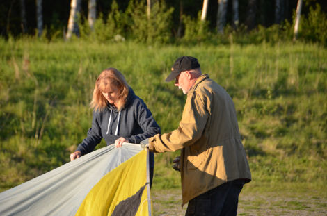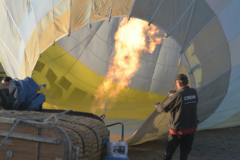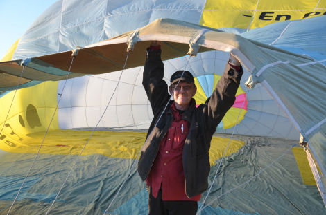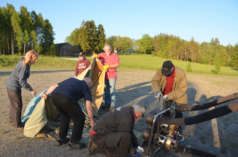 ... Trevor höll i för att hjälpa ballongen att ligga stilla. När ballongen reses håller man också emot med det repet så att ballongen reser sig kontrollerat.