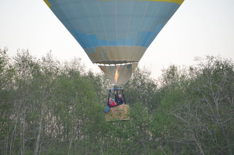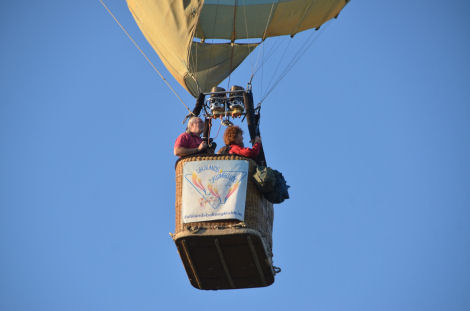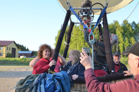 Så stod då ballongen startklar och Cathy, Rose och Trevor gjorde Kenneth sällskap i ballongkorgen.