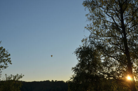Från där följebilen stod såg det ut som om ballongen kom över träden och ...