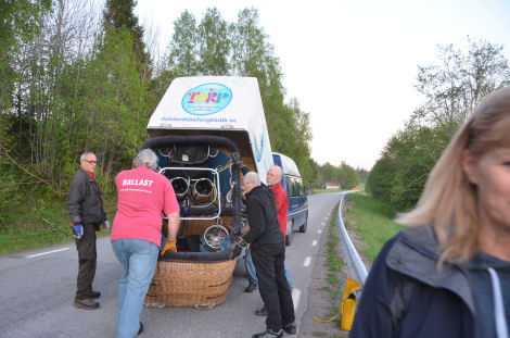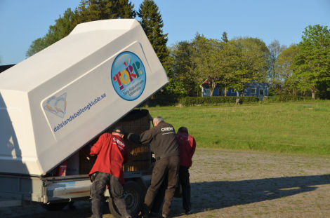 Så blev det dags för ballongkorgen att lyftas upp på släpkärran igen.