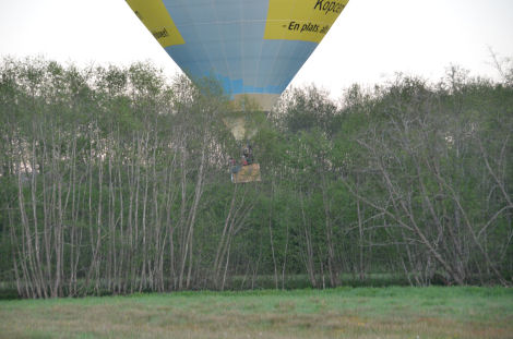 Så närmade sig ballongen på andra sidan träden.