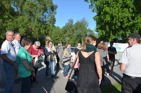 Vid samlingen utanför Kroppefjälls hotell inför kvällens flygning samlades många intresserade. En del av dessa var i Dalsland i samband med Kulturturista. There were many interested people at the gathering outside Kroppefjälls hotell before the evening's flight. Some of these were in Dalsland in connection with Kulturturista.