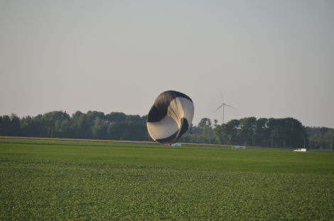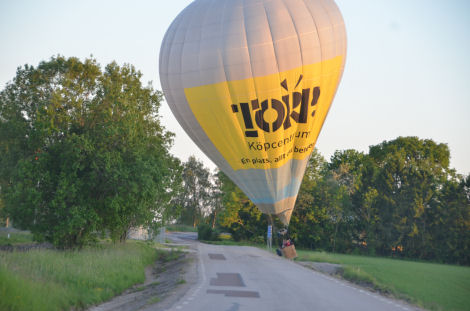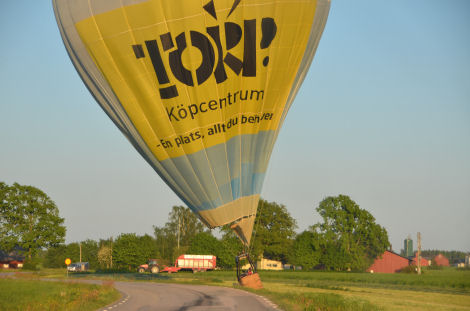 ... jodå där stod strax ballongen på marken nära vägen. ... yes the balloon was soon standing on the ground near the road.