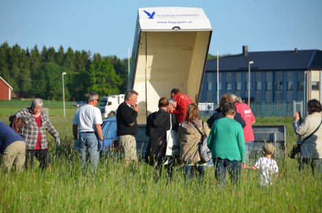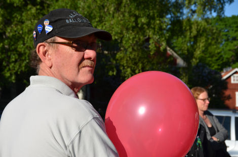 Bengt stod redo med den heliumfyllda ballongen som när den släpptes fri skulle stiga till väders och ... Bengt was ready with the helium filled balloon which when released would go up and ...
