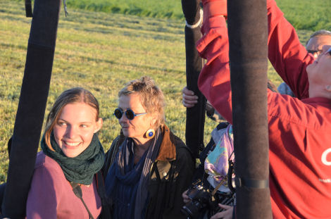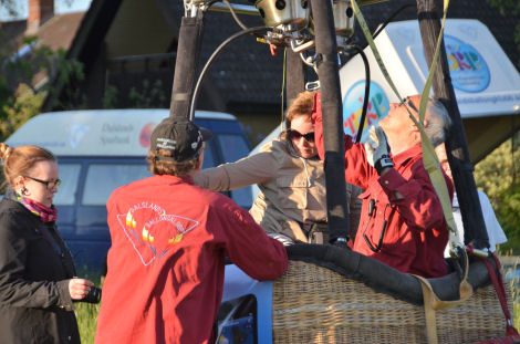 Kenneth hade snart rest hyrballongen och passagerarna tog sig ivrigt i korgen. It wasn't long before Kenneth had the rented balloon standing up and the passengers eagerly climbed into the basket.