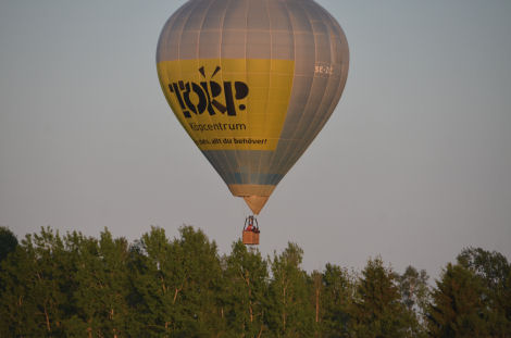 Ballongen steg till väders igen och flög såpass högt att man såg Vänern och bergen på andra sidan den stora sjön för att sedan sjunka neråt igen och flyga i trätoppshöjd. The balloon took to the skies again and flew high enough to see Vänern and the mountains on the other side of the big lake and then descended to treetop height.