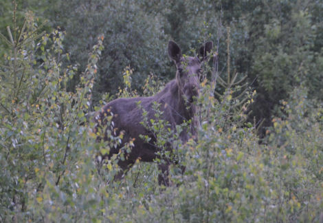 På vägen från flygningen stod en älg intill vägen och tittade intresserat på oss. On the way back from flying there was a moose by the road watching us with interest.