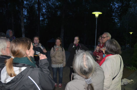 Resterande champagne som inte använts vid dopet skålade vi i för både nya och gamla aeronater. The champagne that didn't get used when baptizing was then used in a toast for new and old aeronauts.