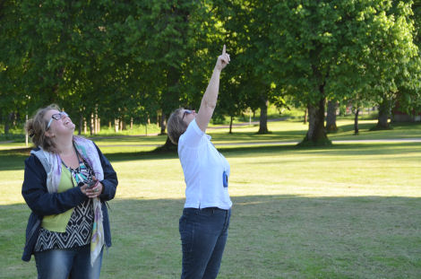 Länge gick det att se "väderballongen" och Eva visade var den kunde ses där uppe. You could see the "weather balloon" for a long time and Eva was pointing out where you could see it.