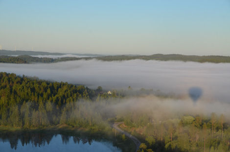 Idag var det inte ballongen som speglade sig i Frustugetjärnet strax intill startplatsen utan fullmånen.