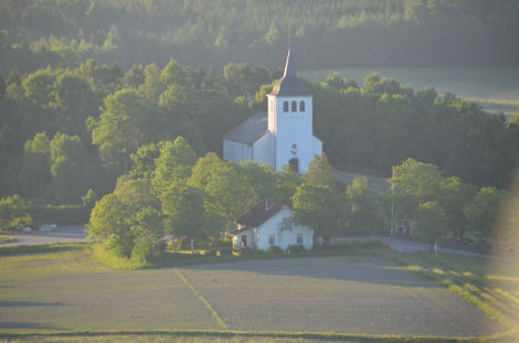 Ballongen fortsatte österut över Rännelanda kyrka. Genom länk under faktarutan ovan kan du på kartan följa var ballongen flög.