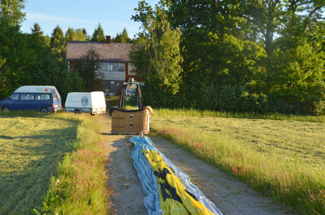 Intill Kåtebols festplats började vi plocka fram ballongen ur släpkärran och planeringen var att flyga åt nordost till Rännelanda och Härsängen.