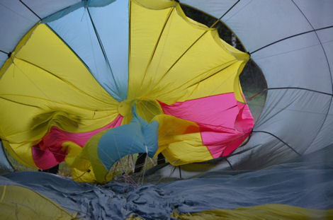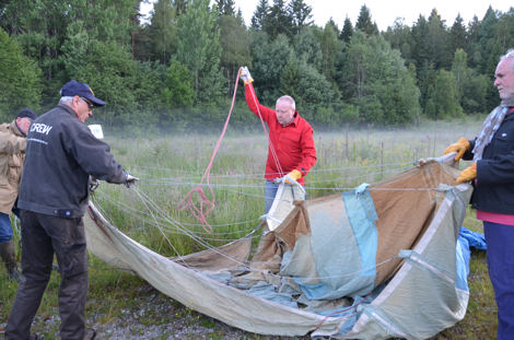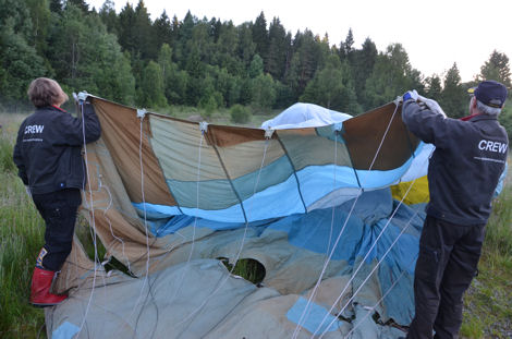 ... snart hade luften verkligen gått ur ballonghöljet. Lika fascinerande varje gång att det stora luftfyllda ballonghöljet kan gå att få så litet igen efter flygningarna att det går att få tillbaka det i säcken på nytt.