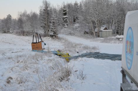 Alldeles före ett vilthägn landade ballongen sedan vid Korpefjället.