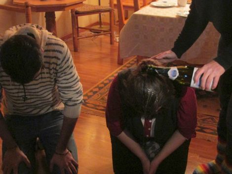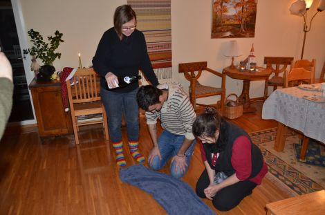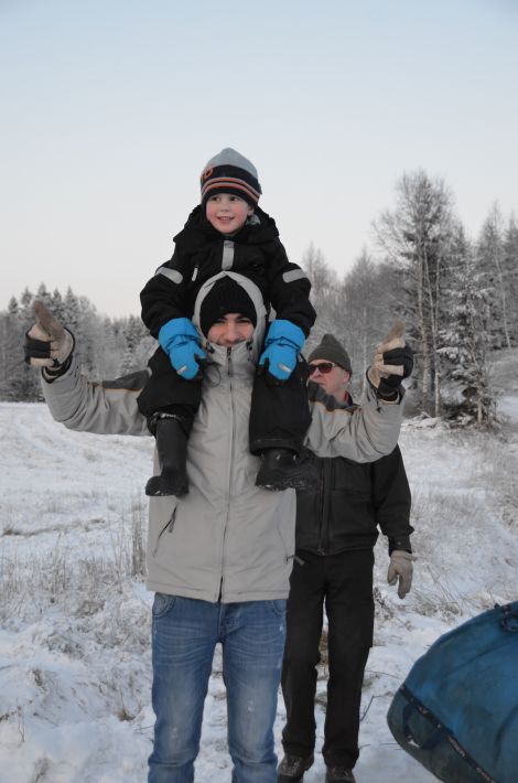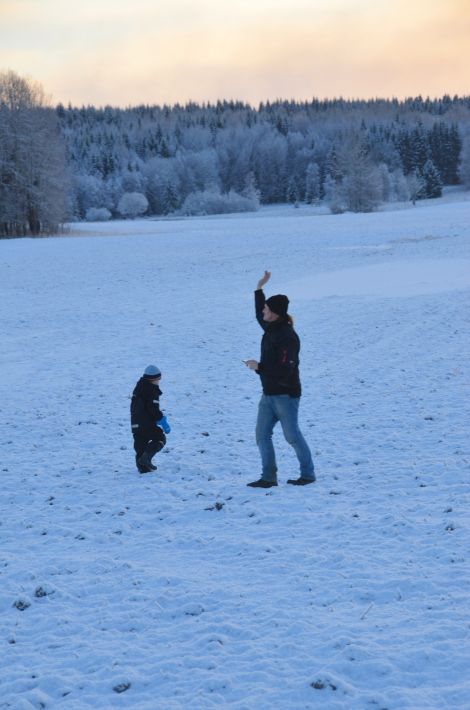 Ulrik och Elie busade med varandra för att hålla värmen.
