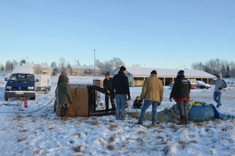 Så stod snart ballongen startklar med Krister, Tomas, Johan och Ulrika som passagerare.