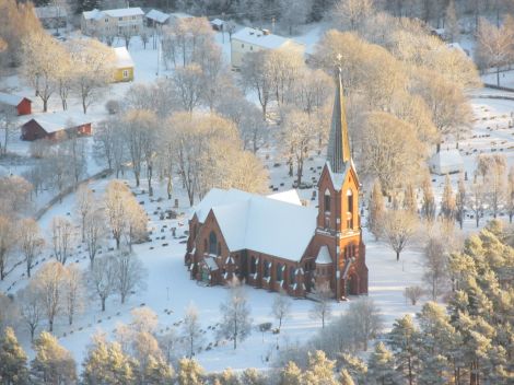 Högsäters kyrka "Domkyrkan på Dal" syntes i fin vinterskrud.