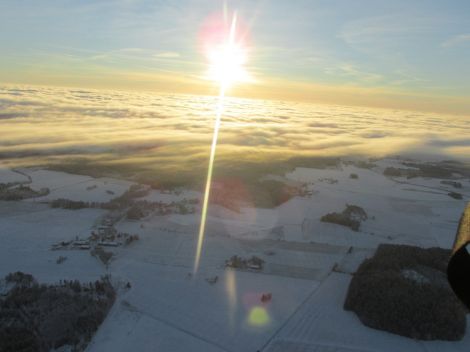 Söderut fanns ett lågt molntäcke som vid lågflygning skymde solen.