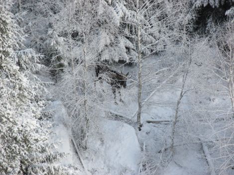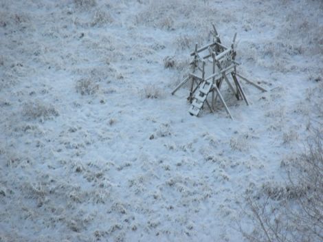 Påpassligt nog fanns ett jakttorn strax intill älgarna - men inga jägare var ute där idag.