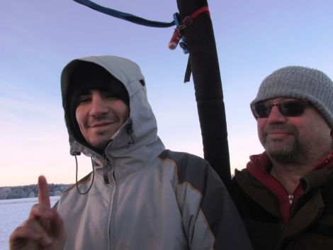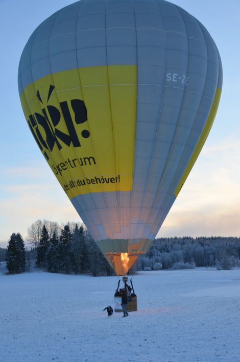 Elie klev upp i ballongkorgen för att göra sin allra första flygning medan Krister nöjd stod kvar för att njuta en stund till.