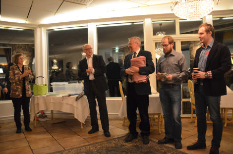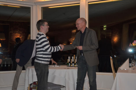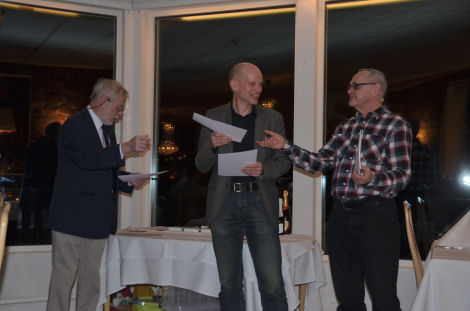 Efter varmrätten ordnade Hans Åkerstedt och Anders Åkvist prisutdelningar och Eva fick ta emot Dalslands ballongklubbs plakett som SM-arrangör 2013.